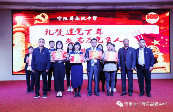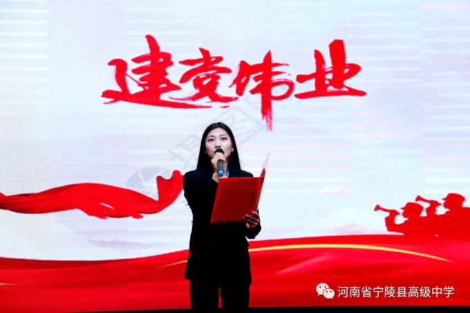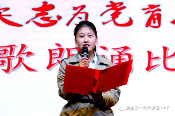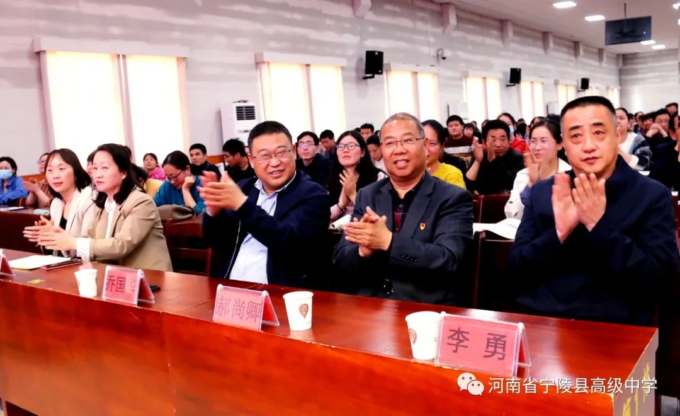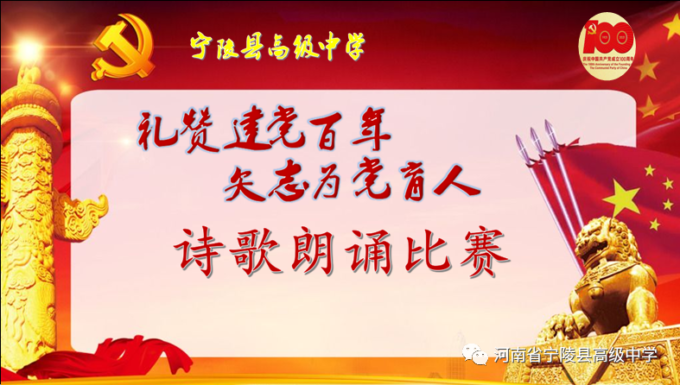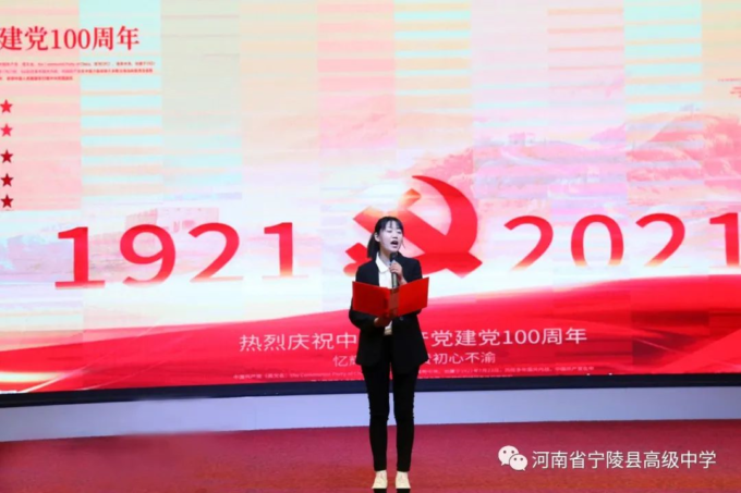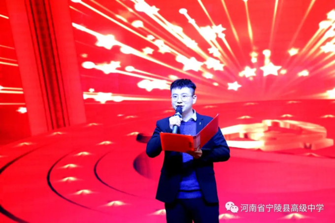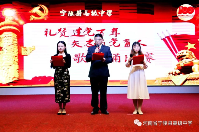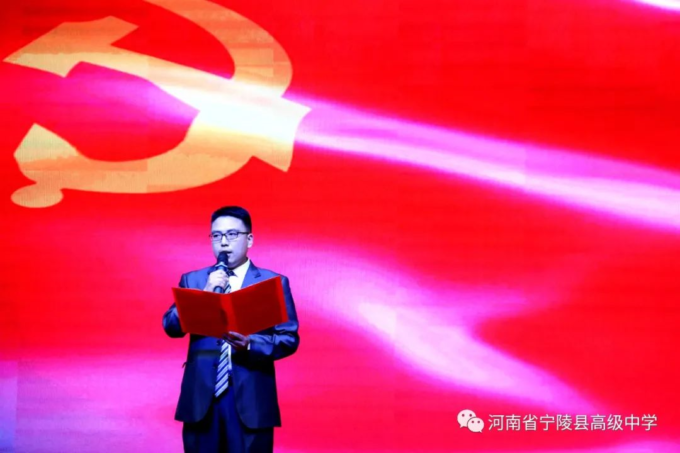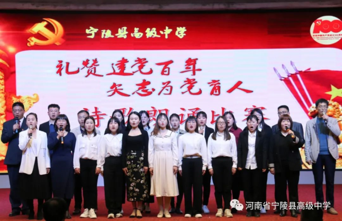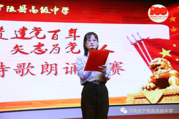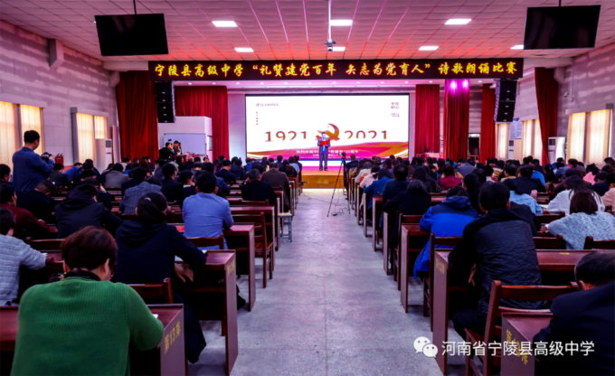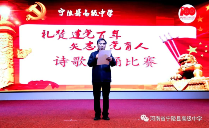 为纪念中国共产党百年华诞,激励广大教师不忘立德树人初心,坚守为党育人为国育才的使命担当,以高质量的师德建设水平向建党百年献礼,4月19日,宁陵县高级中学隆重举办“礼赞建党百年矢志为党育人”诗歌朗诵比赛。县教体局党组书记、局长李勇,副局长郝尚卿,副局长、县高中校长乔国华等领导出席了此次比赛活动,全体学校领导班子担任本次比赛评委。此次活动在雄壮的国歌中揭开序幕。学校副书记郑成学致辞中指出,此次活动目的是通过唱响爱党爱国爱社会主义主旋律,讲好建党百年革命历史,加强和改进新时代师德师风建设。比赛中,九位参赛教师紧扣“礼赞建党百年,矢志为党育人”主题,借助自己制作的影音作品,以最饱满激昂的情绪歌颂共产党人“不忘初心,砥砺前行”百年奋斗历史,歌颂中国特色社会主义新时代,对学校师德优秀和带病坚持工作,忠于职守、潜心教学、爱岗敬业、扎根三尺讲台的优秀教师真实事例进行了讴歌,用铿锵和坚定表达为党育人、为国育才的使命担当。参赛教师以充沛的情感,抑扬顿挫的声调,发自肺腑的朗诵,感人至深、催人奋进,赢得了台下观众一阵阵掌声。经过两个多小时的激烈角逐和评委公正公平评判,评出一等奖1人,二等奖3人,三等奖5人。李勇局长、郝尚卿副局长、乔国华校长分别给一、二、三等奖参赛老师颁发了奖品和证书。乔校长对参赛教师精彩表现给予高度评价,鼓励大家传承党的优良传统,坚守教育初心,扎根三尺讲台,凝心聚力、奉献争优,为教育事业奉献自己的力量。伴随着一首《没有共产党就没有新中国》,此次诗歌朗诵比赛活动圆满落下帷幕。通过参赛教师的精彩朗诵,回望中国共产党波澜壮阔的百年征程,广大教师更加坚定了对党的信念和热爱,纷纷表示,将坚守立德树人的初心,践行为党育人的使命,努力做教育改革的奋进者,学生成长的引导者,以德立身,以德立学,以德施教,争做“有理想信念、有道德情操、有扎实学识、有仁爱之心”的好老师,用拼搏和奉献谱写新时代的华章,以优异成绩向建党百年华诞献礼。