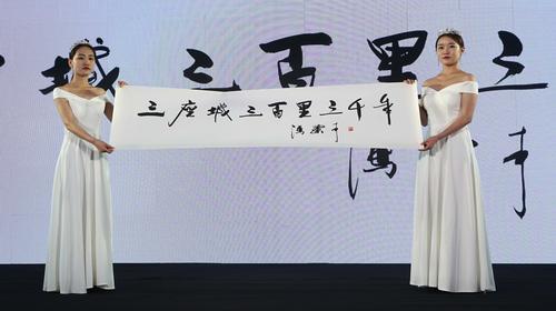 开机仪式现场展示了著名作家冯骥才为《三座城·三百里·三千年》题写的片名。