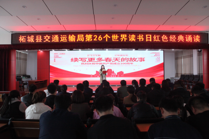 在第26个 “世界读书日”来临之际,柘城县交通运输局结合党史学习教育工作,开展红色经典诵读活动,引导广大党员干部读党史、学党史、用党史,对照初心、常思使命,读出别样的“味道”。