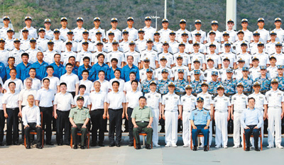 中央和国家机关有关部门、军委机关有关部门、海军、海南省以及舰艇科研生产单位的负责同志参加交接入列仪式。
