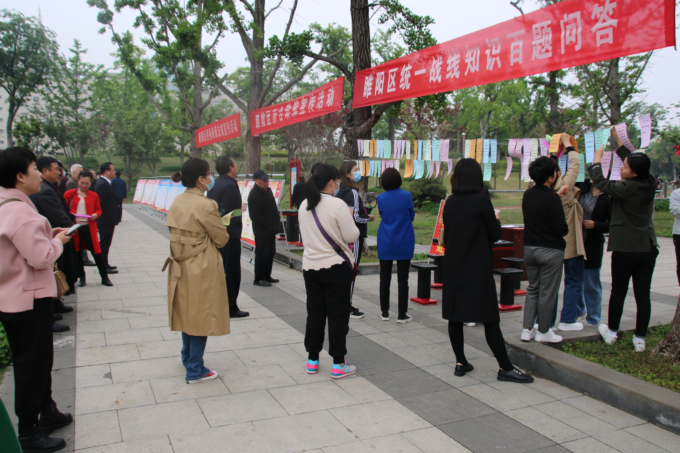此次活动,共制作展出《统战工作条例》、《宗教事务条例》、《归侨侨眷权益保护法》、《反国家分裂法》等统战政策法规宣传版面30余块,悬挂宣传条幅10余条,发放统战政策口袋书、宣传页、明白纸、告知书等5000余份。举办了统一战线百题知识有奖问答、学习贯彻统战工作条例集体签名等系列活动。区委统一战线工作领导小组成员单位、各乡镇(街道)和全区各民主党派成员、党外知识分子及民族宗教、非公经济、侨台、新的社会阶层人士代表共计100余人参加了宣传活动。(田保庆通讯员张兵)