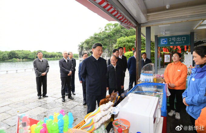 26日下午,习近平总书记来到桂林市象鼻山公园考察调研,并同游客亲切交谈。他指出,桂林山水甲天下,天生丽质,绿水青山,是大自然赐予中华民族的一块宝地,一定要呵护好。要坚持以人民为中心,提高服务质量,提升格调品位,努力打造世界级旅游城市、宜居城市。