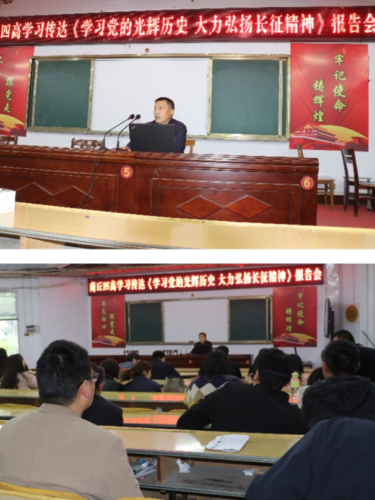 4月27日下午,商丘市四高在道德讲堂召开“学党史、悟思想、办实事、开新局”报告会,集中学习传达区委党校专题会议精神。报告会由四高党史教育宣讲组成员孙亚伟主讲,全体党员和部分一线教师参加了学习。