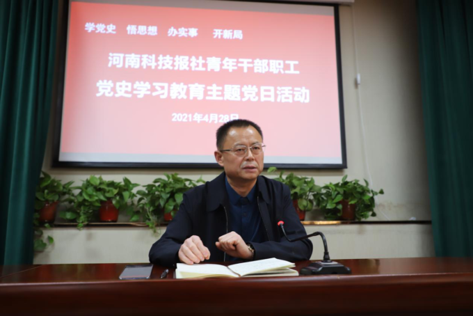 在“五四”青年节来临之际,为推进报社党史学习教育往深里走往实里走,河南科技报社团总支于4月28日举行了以“青春心向党 建功新时代”为主题的党史学习教育活动,号召广大青年干部职工通过党史学习教育,强化理想信念、增长知识才干,听党话,跟党走,在各自的工作岗位上建功立业。河南科技报社社长李志民参加活动。