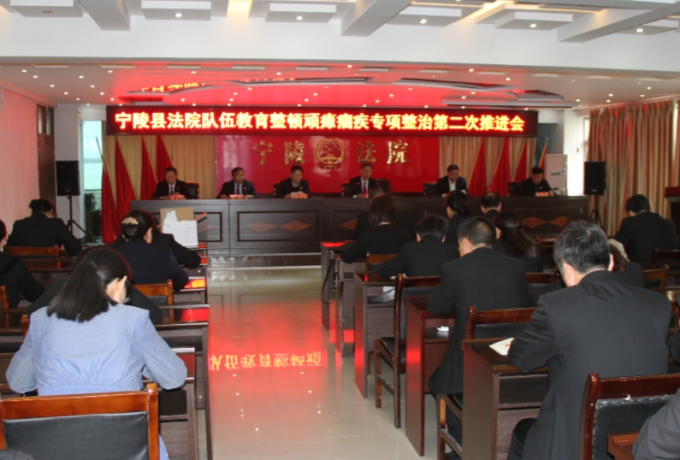 为坚决有效整治顽瘴痼疾,有序有力推动队伍教育整顿查纠整改环节深入开展,4月28日上午,宁陵县法院召开队伍教育整顿顽瘴痼疾专项整治第二次推进会。党组书记、院长王宏伟出席会议并讲话。会议由党组成员、政治部主任骆俊杰主持。