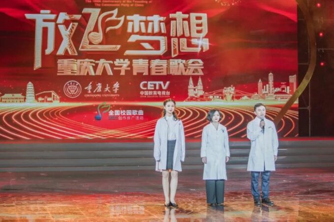 在五四青年节到来之际,由中宣部文艺局、教育部思政司指导,中共重庆市委教育工作委员会、重庆市教育委员会、重庆大学、教育部高校思想政治工作创新发展中心(重庆大学)、重庆广播电视集团(总台)、中国教育电视台联合主办的“庆祝建党百年,唱响新时代——全国高校接力唱”第三站“放飞梦想——重庆大学青春歌会”日前在美丽山城重庆激情唱响,歌会节目于5月4日21:30在中国教育电视台一频道和重庆卫视同步播出。