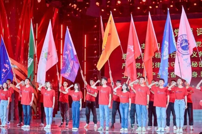 在“我志愿加入中国共产党,拥护党的纲领”的铮铮誓言中,来自重庆大学、西南大学、西南政法大学等十五所在渝高校的学生党员代表面对鲜红的党旗,代表全国大学生重温入党誓词,表达了广大青年永远跟党走,努力成为堪当民族复兴重任的时代新人,让青春在为祖国、为民族、为人民、为人类的不懈奋斗中绽放绚丽之花的坚定信念。