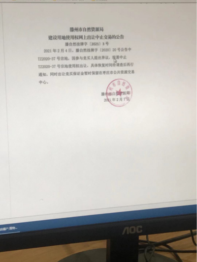 “2021年4月26日滕州资源局给我们公司下达重新挂牌出让的通知,并对重新挂牌设置相关限制,要求三天内完成竞拍,这明显不符合相关规定。滕州资源局重新挂牌的理由是交易平台网络故障,但两个多月的时间过去了,并没有提供任何合法有效经权威部门检测鉴定的平台故障的证明文件。滕州资源局只有向社会公布权威部门检测鉴定的交易平台网络故障报告,这样才有说服力,才有公信力。否则就是作弊,就是利用公权力破坏交易公平。我们会将这场官司打下去的,直至那个操纵TZ2020-37号宗地交易的人被绳之以法。”怡之航公司一员工说。