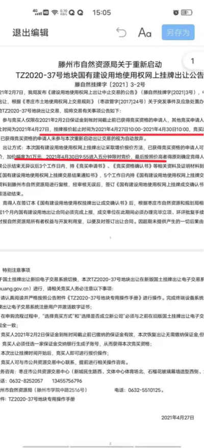 据了解,滕州资源局从2月7日发布中止TZ2020-37号地块交易,到4月27日重新挂牌交易,始终没有向怡之航公司提供2月4日该宗地交易期间的“网络故障”权威机构出具的技术鉴定报告。