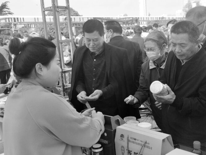 4月26日,平顶山市消费惠农活动暨平报购时惠商城上线仪式在该市鹰城广场举行,来自全市各县、市、区的47家涉农企业在现场进行了展销活动,300余种优质特色农产品让人目不暇接,尤其是实惠的价格吸引了众多市民争相购买。 江 浩 摄