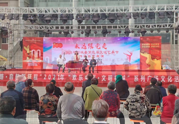 本届“文化艺术节”活动具体包括综艺性节目、少儿才艺展示、传统豫剧展演、传统曲艺展演等5个专场展演。舞蹈《我和我的祖国》、戏曲《朝阳沟》、魔术《和平盛世》、少儿舞蹈《纸飞机》、歌曲《没有共产党就没有新中国》等节目轮番上演,精彩纷呈的节目表演赢得了现场观众的阵阵掌声。节目期间,主持人与现场观众进行了党史知识互动问答,进一步将演出推向了高潮。