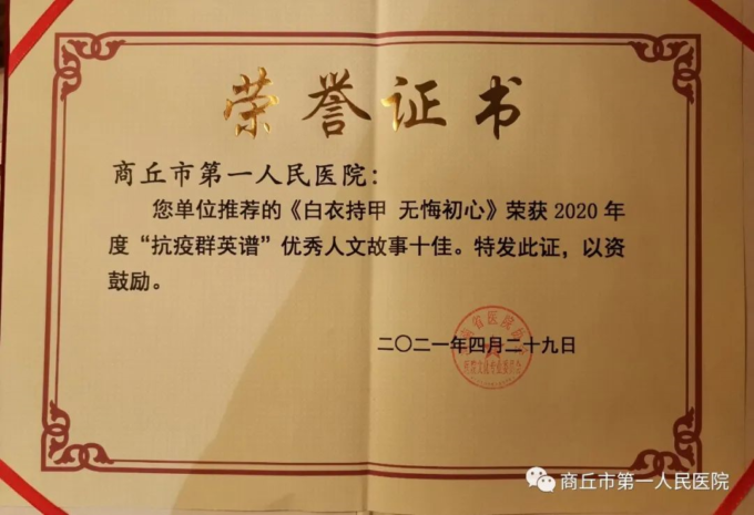 商丘市第一人民医院文化和健康宣传优秀作品获奖