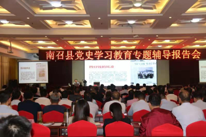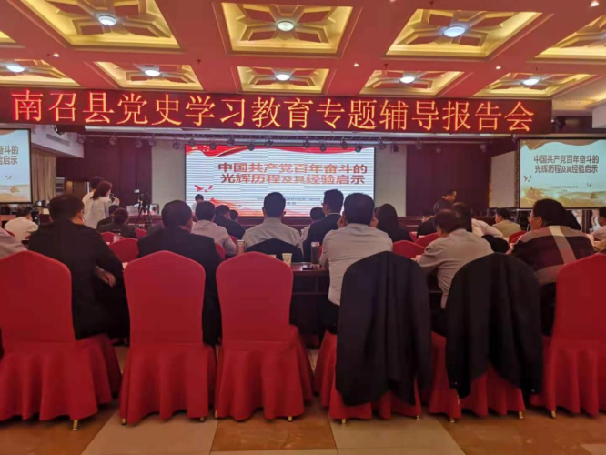 中央党史和文献研究院是党的历史和理论专门研究机构,为党史学习教育编辑出版了中央指定的系列指定书籍。为推进全县党史学习教育入脑入心、走深走实,南召县特意邀请中央党史和文献研究院党史研究专家石建国教授赴南召县作专题辅导,为县处级领导干部和全县乡科级干部现场授课。石建国以《中国共产党百年奋斗的光辉历程及其经验启示》为题,深入解读了习近平总书记关于党史学习的重要论述,全面回顾了中国共产党百年奋斗的光辉历程和历史性贡献,系统阐述了中国共产党百年光辉历程的宝贵经验和重要启示。为全县广大党员领导干部、县委宣讲团成员、百姓宣讲团上了一场生动而精彩的党史教育课、思想政治课。