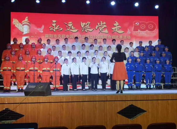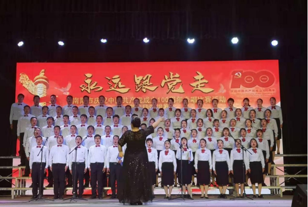5月8日,南阳市“永远跟党走”庆祝中国共产党成立100周年大合唱比赛活动南召县选拔赛在南召剧院举行,来自南召县直单位及乡镇的22支合唱队参加比赛。
