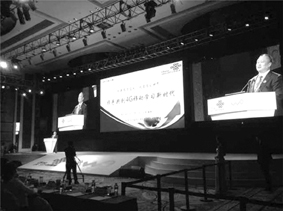 贾小波在中国联通集团合作伙伴大会上演讲。