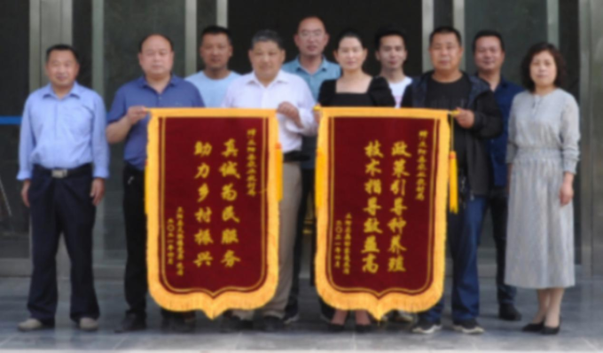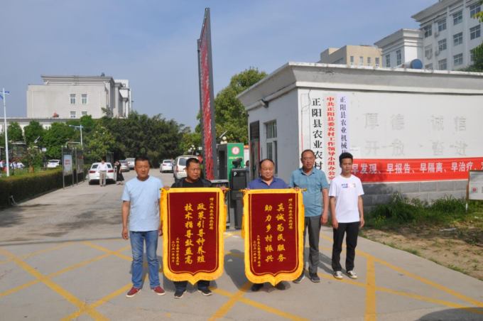 5月10日上午,正阳县大林镇副镇长肖向阳及村民代表、正阳县桑田家庭农场经理涂桑田等一行5人,把写有“真诚为民服务,助力乡村振兴”和“政策引导种养殖,技术指导效益高”字样的两面锦旗,送到县农业农村局党组成员、副局长付元强和副主任科员马玲手中。感谢县农业农村局近年来给予的支持和帮助。