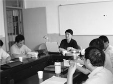 涂兴子(左二)在中国矿业大学进行学术交流。(资料图片)