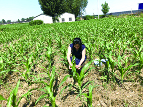 孙叶在安皋镇田间查看玉米长势。(资料图片)