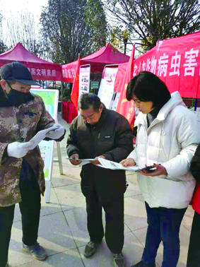 南阳市卧龙区农业技术推广中心在英庄镇宣传讲解小麦“一喷三防”技术。(资料图片)