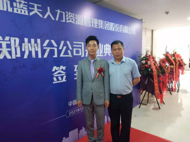 5月15日上午,北京首航蓝天集团旗下北京首航蓝天人力资源管理集团股份有限公司郑州分公司正式揭牌开业。首航人才集团党委书记、董事长高士萱先生和北京长城航空集团下属的副总经理、首航人才郑州分公司总经理王华伟先生共同出席了本次开业揭牌典礼。
