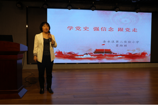 2021年5月13日,郑州市金水区第二实验小学“红心向党 学史笃行”学党史系列活动第二期开讲。党支部书记任彩凤同志、刘英杰同志、贾维丽同志分别就长征精神、抗美援朝精神和“两弹一星”精神带领师生们从百年党史中汲取前行的力量。