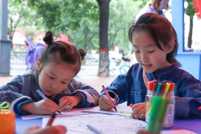 “流感的安全距离是多少?”知识科普区,孩子们边思索边回答主持人提出的问题;游戏区,“拜拜吧!病毒君”吸引了孩子们排队体验;涂色卡创作区,大小朋友坐在一起,聚精会神地为“健康”涂上鲜艳的颜色,创作出一幅幅美丽画作;合影区,更是吸引了不少家庭一起留下温馨的合影。