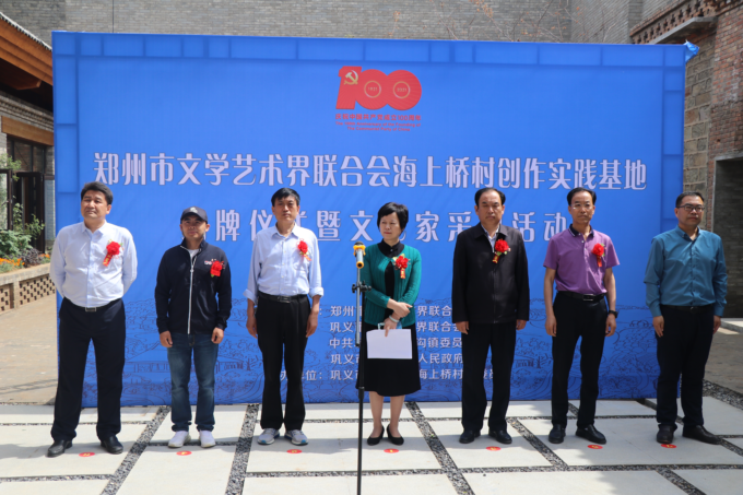 郑州市文联党组书记、主席景雪萍在讲话中,希望大家携起手来,把海上桥村建设成为郑州乃至全省、全国最有文化韵味、最有艺术气息、最有自然美感的美丽乡村。她提出要在三个方面下功夫:一是要下功夫把创作实践基地用起来。文联要把海上桥打造成为艺术家的家园,也希望每位艺术家都把海上桥基地作为自己的家来爱,让自己的灵魂在海上桥得到净化,让自己的思想在海上桥得到升华,让自己的境界在海上桥得到提升。二是要下功夫把文艺创作活动搞起来。文艺创作要进村入户,郑州市文联各个协会,特别是美协、书协、作协、民协、曲协、摄协等,要经常来,创作一批让人眼前一亮的精品力作。活动要争取周周有、月月有、季季有、年年有。笔会、采风、演出、摄影、视频等各种艺术形式不停上演、百花齐放。让这方文艺的沃土真正热起来、火起来,为全国的文艺创作探索出郑州的模式。三是要下功夫把乡村文化名片立起来。通过海上桥艺术村的打造,让父老乡亲更加的崇文尚艺,更加的文明生活、诗意生活、浪漫生活,让海上桥成为乡村文化建设的一张闪亮名片,争取在巩义、在郑州带动出更多的艺术村,让我们新时代的新农村更美。