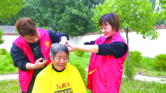 5月15日,在宝丰县张八桥镇东火山村党群综合服务站,志愿者正在给该村村民张菊花理发。“用心学党史,真心办实事”,自党史学习教育开展以来,张八桥镇以“学党史、悟思想、办实事、开新局”为统领,把学习党史同推动工作结合起来,同解决实际问题结合起来,同为群众办实事结合起来,不断谋求乡村振兴新举措,不断解决好群众的“急难愁盼”问题。 李战胜 摄