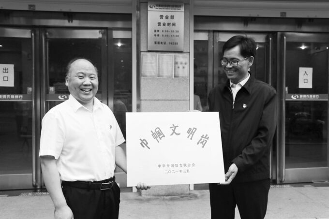 近年来,舞钢农商银行充分发挥女职工岗位建功、窗口服务的作用,不断强化业务学习,提高服务水平,用实际行动践行了“巾帼文明岗”的责任与担当。图为5月14日,舞钢市委副书记李庆豪(右)在舞钢农商银行举行的“全国巾帼文明岗”授牌仪式上为舞钢农商银行授牌。