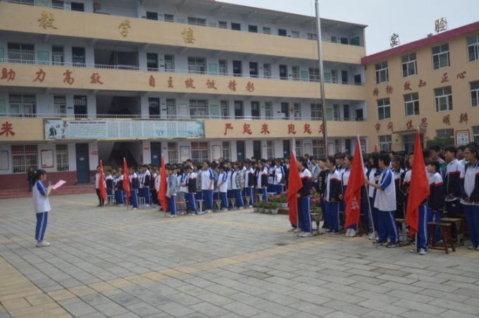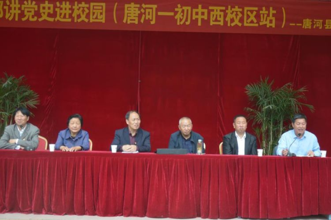 朱校长主持会议,向同学们介绍了报告团成员:县关工委副主任郝修俊,县关工委成员张桂云、韩国成、王占国,县教体局“三生教育”办公室齐立林老师。并宣布唐河县老干部讲党史报告团走进唐河县一初中西校区报告会正式开始。