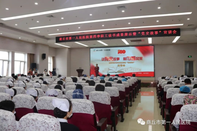 五月暖风缭绕书香,百年红船荡漾辉煌。5月20日下午,院妇委会在儿科医技楼17楼会议室举办了第四季职工读书成果展示暨“党史故事”宣讲会。党委书记、院长韩传恩到会致辞。在院院领导李传中、石红英、张玉玲及妇委会成员等200多人参加了会议。
