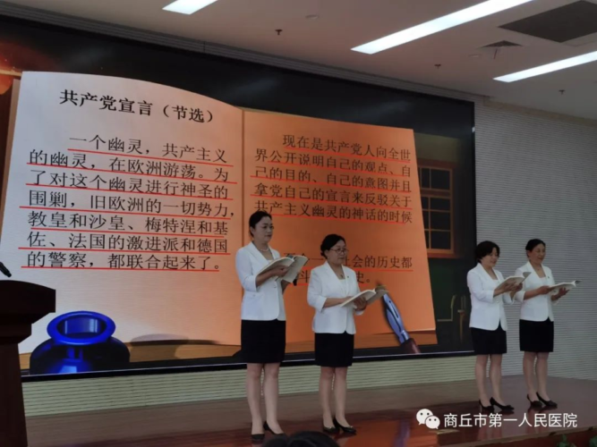 真情致敬英雄。随后,谷晴、张翔、乔慧娟、王鹏、张慧影、侯雪连、李玉舟饱含深情地与大家分享了《烈火铸英魂》《死也不倒下》《伟大的先驱》《江姐》《一件白衬衣》《傅雷家书》《丰碑》的故事,再现了那些铁骨铮铮、视死如归的革命烈士、英雄人物的崇高信仰和坚强意志。王兰英、陈淑霞、崔秀兰、齐慧合作朗读的《共产党宣言》,让大家热血沸腾。李峰、张晶晶、肖岩、魏海龙、张未未、冯慧娴汇报演出了催人泪下的红色家书--《信仰的力量》。篇篇故事,感天动地,传递的是红色江山热血铸就的励志之力,荡漾的是红色基因代代相传的奋斗之志。