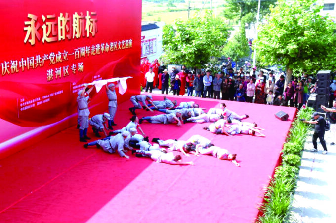 5月18日,党史学习教育专题文艺演出“永远的航标”——平顶山市庆祝中国共产党建党一百周年走进革命老区文艺巡演,在平顶山市湛河区曹镇乡曹西村举行。巡演把“党史课堂”搬到群众身边,以歌曲、舞蹈、曲艺、戏曲、小品等群众喜闻乐见的形式,讴歌党的丰功伟绩,展示党员的为民情怀,抒发人民群众对党、对祖国的热爱。 王毛生 摄