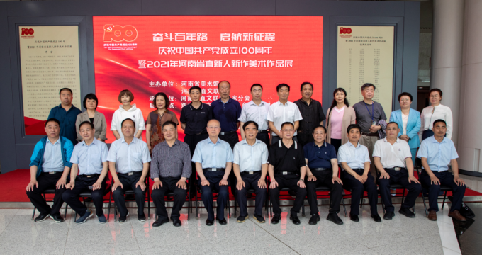 为庆祝中国共产党成立100年,2021年5月22日,河南省美术馆和河南省直文联在郑东新区艺术中心美术馆联合推出“奋斗百年路 启航新征程——庆祝中国共产党成立100周年暨河南省直新人新作美术作品展在河南省美术馆开幕。中共河南省委直属机关工委原巡视员孙春永宣布展览开幕、省民政厅二级巡视员李本谦、省文化和旅游厅科技教育处长张占标、河南省直文联主席殷江林、河南省直美协主席罗运华、河南省直摄影家协会主席关照耀、河南省美术馆副馆长郭黎莅、河南省直单位特邀嘉宾,以及媒体朋友和社会各界美术爱好者参加了开幕式。