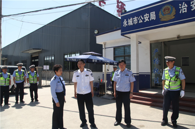 5月27日,为切实做好庆祝建党100周年期间道路交通安保各项工作,全力预防重特大交通事故的发生,为人民群众持续创造一个安全、畅通的道路交通环境。商丘市公安局交警支队党委书记、支队长张政勇带领交警支队党委委员、警务保障大队大队长张明星到永城督导检查庆祝建党100周年交通安保工作开展情况,永城市公安局交警大队大队长肖春平陪同。