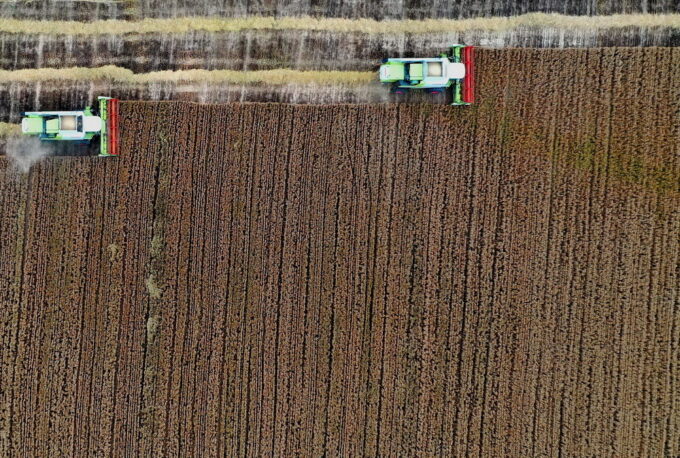 眼下,“中原粮仓”河南迎来夏粮收获季,麦浪滚滚,大地镶金,小麦收割陆续开始。