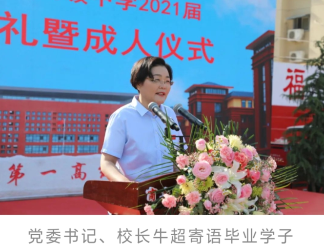 党委书记、校长牛超寄语毕业学子毕业典礼在庄严的国歌声中拉开序幕。党委书记、校长牛超在致辞中首先代表学校领导向圆满完成高中学业,即将踏上人生新旅途的全体毕业生表示祝贺,并向长期关心支持一高发展的各位领导和各位家长致以诚挚的感谢。再过几天,高三学子们即将离开母校,告别学习生活三年的一高校园,告别朝夕相处的老师同学,告别这段难忘的高中岁月,踏上人生新的征程。希望每一位毕业生牢记父母的嘱托,铭记恩师的厚望,始终和时代同步,与共和国共同成长,奉献祖国,服务人民。立大志、明大德、成大才、担大任,努力成为堪当民族复兴重任的时代新人,书写新时代的青春答卷。同时,祝愿同学们圆梦高考,金榜题名!