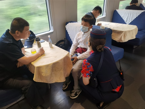列车员瞿恺雯在开导阿强不要与父母赌气,更不能离家出走