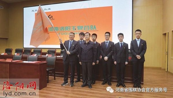 开幕式上还举行了“河南洛阳玉泉谷队”冠名仪式。省围棋协会秘书长汪见虹九段与浙江省围棋协会秘书长卢俊和、玉泉谷(北京)商业运营管理有限公司总经理孙文东共同签署了冠名协议。五名队员周贺玺、胡钰函、王春晖、许一迪、叶长欣登台与观众见面。孙文东总经理为汪见虹九段颁发总教练聘书,杨中军副局长向河南洛阳玉泉谷队授队旗。