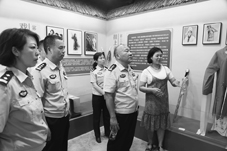 郑州市公安局治安支队领导和民警在聆听八路军太行军分区张岭地下情报交通站的感人事迹。