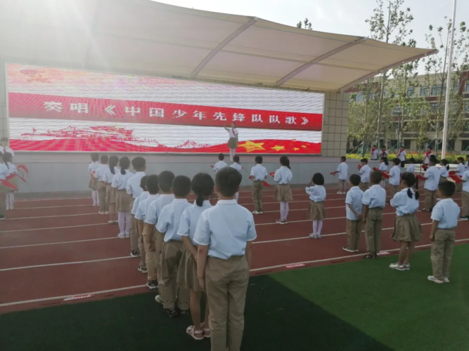 随着激昂的《少先队出旗曲》响起,少先队旗手们踏着整齐划一的步伐走向主席台,标志着入队仪式正式开始。“我们是共产主义接班人,继承革命先辈的光荣传统……”新老少先队员们齐唱《中国少年先锋队队歌》,表达了全体师生热爱社会主义伟大祖国,坚定理想信念跟党走的誓言。