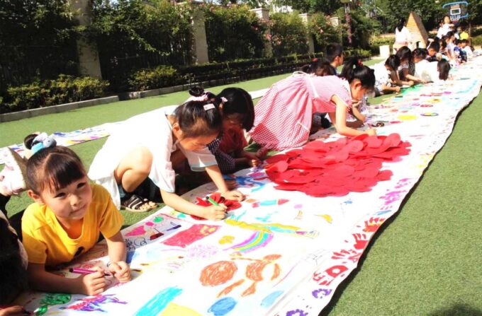 “小小蜡笔穿花衣,红黄蓝绿真美丽”,孩子们哼着轻快的儿歌,拿起五彩斑斓的画笔,在长长的画卷上共同描绘对中国共产党的祝福。通过开展“我的爸妈是党员”、“我的党员教师”等系列活动,孩子们逐渐熟悉了共产党,认识了身边的共产党员,自然而然对共产党产生了喜爱之情,并将这份喜爱之情倾注于画笔,在自己的节日里,一笔一划画出对中国共产党百年诞辰的祝愿。