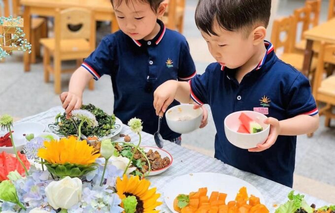 好吃也不要贪多啊,在自主选择食物的过程中,孩子们之间也不忘相互提醒“吃多少拿多少”、“营养搭配更健康”,既要吃得开心,也要吃得健康,同时也不要忘记餐桌礼仪哦。