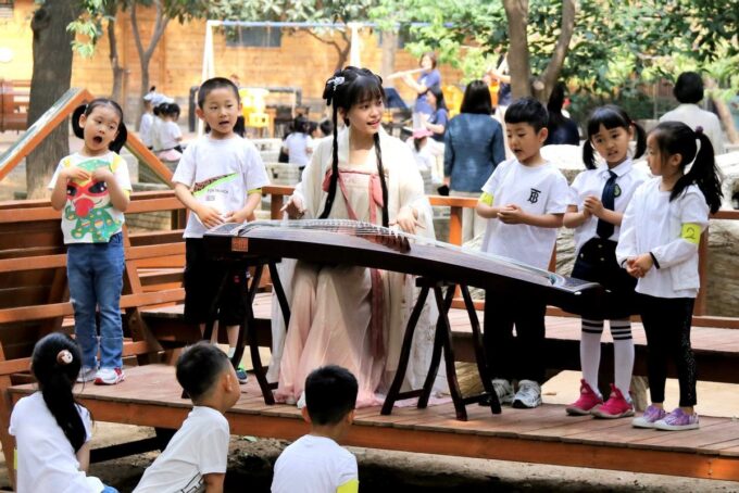 在活动现场开设的民乐演奏区,由才艺教师做指导,为孩子们体验中国传统艺术提供了空间和机会。
