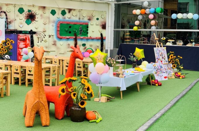 五彩的气球、鲜艳的花束点缀着浪漫的进餐环境,快乐的六一活动怎能少得了美味的食物呢?在孩子们热切期盼中,六一自助午餐会开始啦!香喷喷的蒜香鸡翅、红烧排骨、茄汁牛肉、鱼香鸡蛋、蜜汁南瓜等丰富而又美味的食物挑动着大家的味蕾。