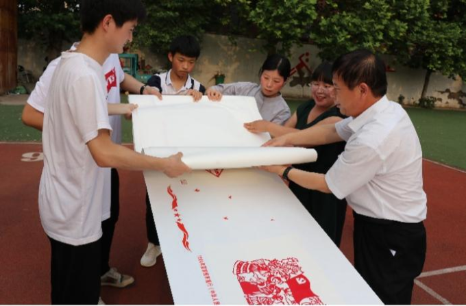 邵红卫说,商丘市第四高级中学党委开展的 “绘百米长卷 庆建党百年”活动,是从1921至2021年党的百年历程中,精选了100个辉煌历史场景,从学生中挑选了100名艺术特长生,历时一个多月,把这100个辉煌历史场景创作出100幅美术作品的100幅剪纸作品,分别装裱成百米长卷。这不仅培养了学生的艺术能力,也加强了学生对党史的系统认识,起到了很好的教育意义。