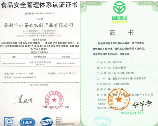 登封市君召乡由于特殊的地理环境,昼夜温差大,所产的蔬菜瓜果富含多种矿物质元素,深受消费者青睐。成立于2005年8月的登封市小苍娃农副产品有限公司(以下称登封小苍娃公司),就是根据地方特色产品应运而生的农产品精深加工企业。位于君召乡海诸村的小苍娃公司农副产品加工基地,占地面积80余亩,是集“种植、培训、加工、销售、电商”为一体化的现代农产品加工企业。该公司自主研发的芥丝、韭花、粉条、方便粉丝、杂粮、酱类制品、豆腐串、辣椒油、麻辣油等10多类系列产品,市场需求大,产品远销全国各地。尤其是该公司生产的芥丝产品,具有产量高、纤维少,加工后具有汆味扑鼻的特色,堪称登封特产一绝,2015年8月被中国绿色食品发展中心认定为“绿色食品”,2020年被农业农村部列入第一批全国名特新优农产品名录。