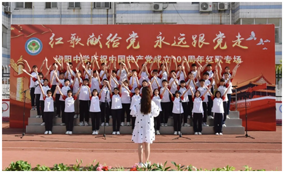 为了庆祝中国共产党建党100周年,推进党史学习教育活动的深入开展,激发师生爱党爱国热情,传承红色革命精神,充分展示全校学子的青春风采,进一步丰富广大师生的精神文化生活,泌阳中学于5月31日在学校操场隆重举行了以“红歌献给党,永远跟党走”为主题的歌咏比赛,献礼建党100周年。本次活动由校团委、体音美组主办。