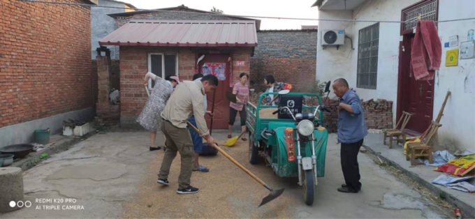 一名党员就是一面旗帜,所到之处皆是百姓拍手叫好。 “你们真是帮了我们大忙了,我们老两口年龄大,又没有拖拉机,要不是你们干部找车子帮我们拉麦子,光靠这电三轮就是拉到明天麦子也拉不完”,韩庄社区居民张艳玲动情的讲道。张艳玲一家三口,老两口年纪较大,身体也不好,其儿子精神二级残疾,丧失劳动能力,家里7亩地,全靠老两口勉强耕种。考虑到张艳玲家庭实际情况,韩庄社区驻村干部王晓航、杨强与支部书记苗振等人驾着拖拉机来到张艳玲家,帮助这一家三口收装麦子,拉到小麦收购点出售。