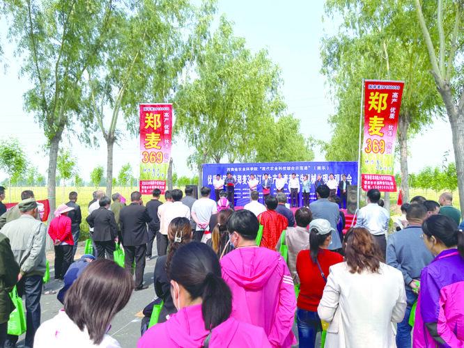 郑麦369订单生产暨麦套花生机械化播种观摩会现场。